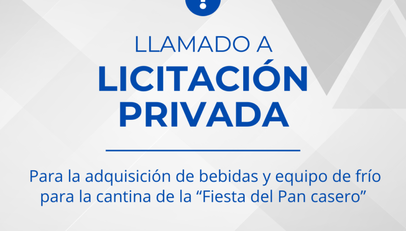LLAMADO A LICITACIÓN PRIVADA. DECRETO N° 178/25 “BEBIDAS Y EQUIPO DE FRÍO PARA LA CANTINA DE LA FIESTA DEL PAN CASERO 2026” por Prensa y Difusión30 diciembre, 202530 diciembre, 2025Deja un comentario LLAMADO A LICITACIÓN PRIVADA. DECRETO N° 178/25 “BEBIDAS Y EQUIPO DE FRÍO PARA LA CANTINA DE LA FIESTA DEL PAN CASERO 2026” Tránsito Decreto 178 (2)Descarga